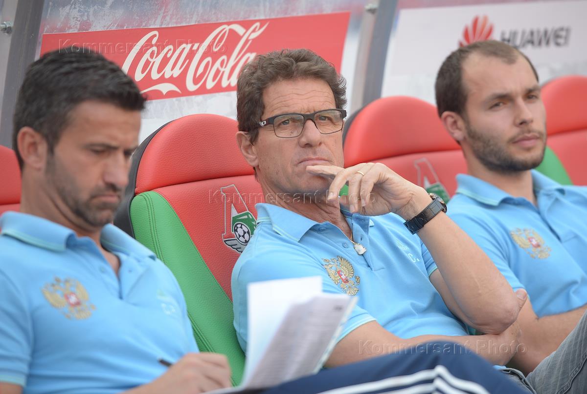 Главный тренер сборной команды России по футболу Фабио Капелло (в центре) во время товарищеского…