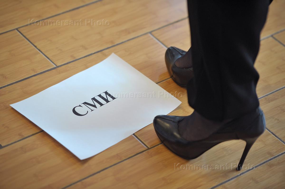 Жанровая фотография. Женские ноги и табличка "СМИ".