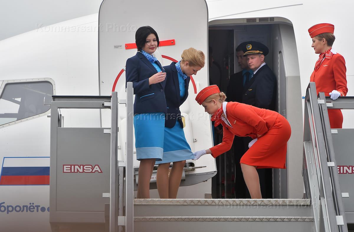 Церемония отправления первого рейса самолета авикомпании "Добролет" по маршруту "Москва -…