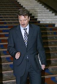 Табличка с надписью "Греф Герман Оскарович, министр России по экономическому развитию и торговле"…