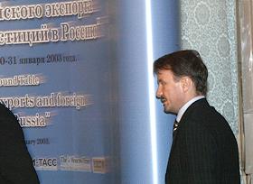 Министр России по экономическому развитию и торговле Герман Греф после заседания Международного…