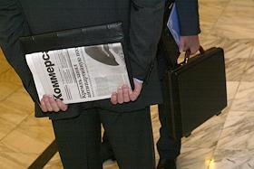Участники Международного круглого стола на тему: "Поддержка российского экспорта" с газетой…