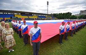 Торжественная церемония «Самый большой флаг России» на стадионе «Москвич» .