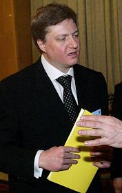 Табличка с надписью "Греф Герман Оскарович, министр России по экономическому развитию и торговле"…
