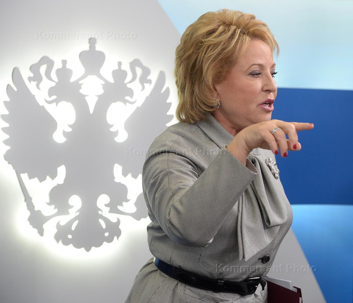 Председатель Совета Федерации России Валентина Матвиенко (в центре) во время заседания комиссии по…