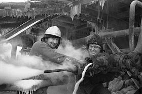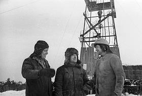 Коми АССР, Сосногорский район, поселок Нефтепечорск. Нефтяное месторождение Пашня. Бурилищики у…