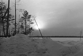 Нефтяное месторождение Пашня в поселке Нефтепечорск Сосногорского районаКоми АССР. Зимняя тундра.