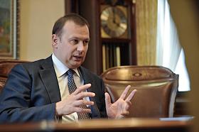 Генеральный директор компании "Ингосстрах" Михаил Волков во время интервью.