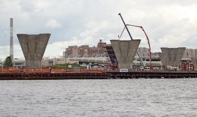 Строительство опор для 5-го участка ЗСД (Западный скоростной диаметр) в Лахте.