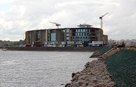 Строительство здание спортивного клуба "Явара-Нева" на берегу Гребного канала.