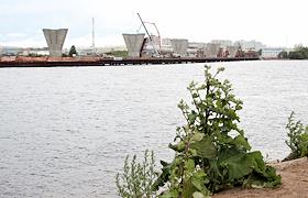 Экономика и бизнес Строительство здание спортивного клуба "Явара-Нева" на берегу Гребного канала; Строительство опор для 5-го участка ЗСД (Западный скоростной диаметр) на Крестовском острове; Вид на Приморский район с Крестовского острова.