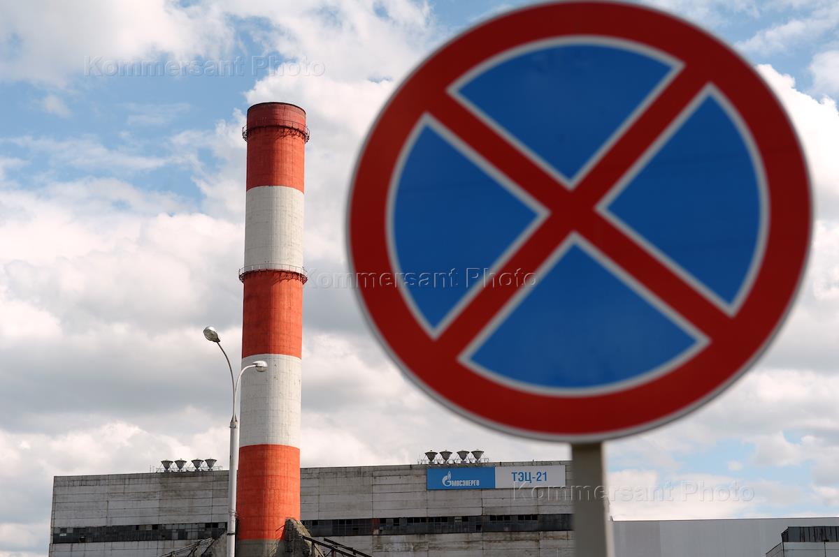 Жанровые фотографии. Станция теплоэлктростанции (ТЭЦ) и дорожный знак парковка запрещена.