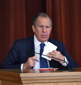 Министр иностранных дел России Сергей Лавров во время совещания послов и постоянных представителей…