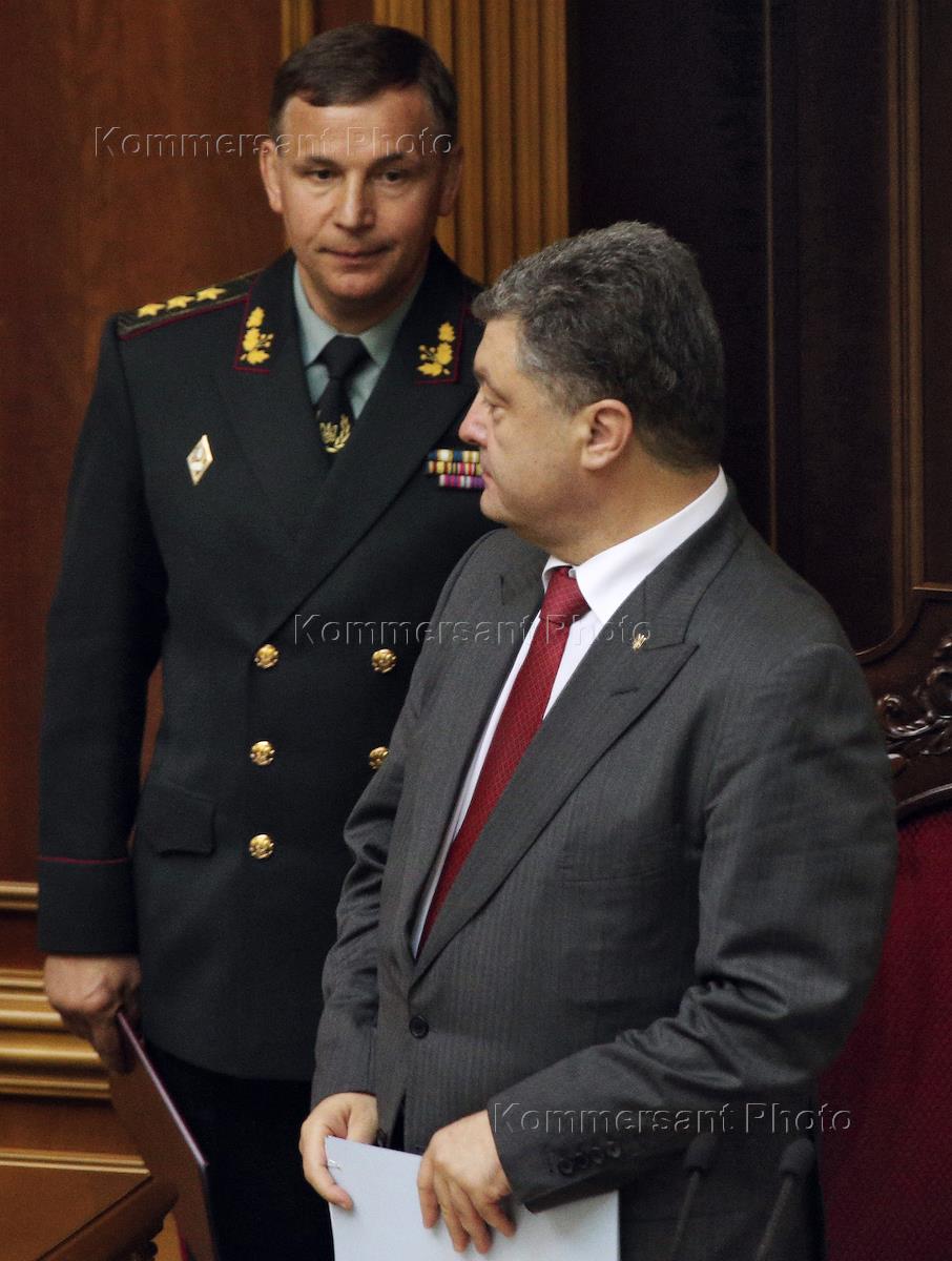 Президент Украины Петр Порошенко (слева) и назначенный министром обороны Украины Валерий Гелетей…