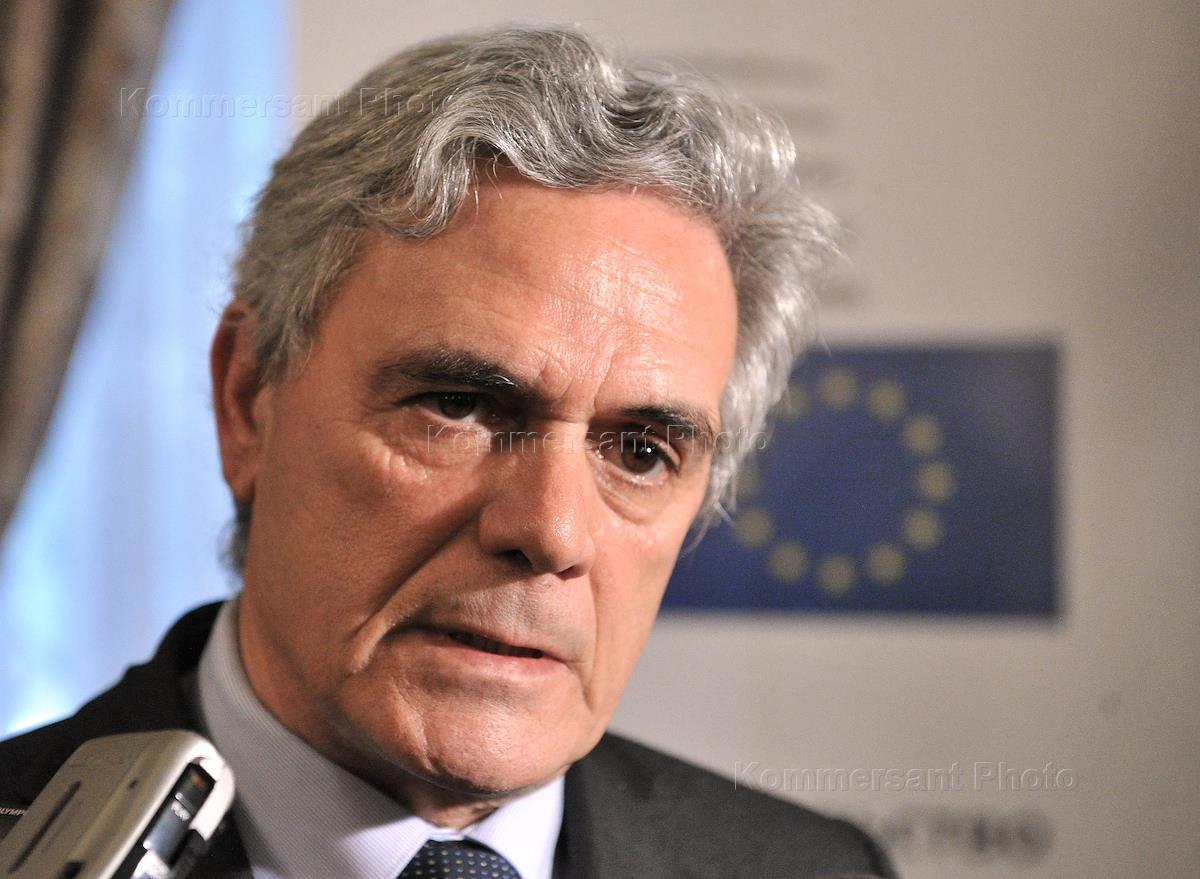 Посол ЕС в России Вигаудас Ушацкас (слева) и чрезвычайный и полномочный посол Италии в России…