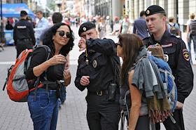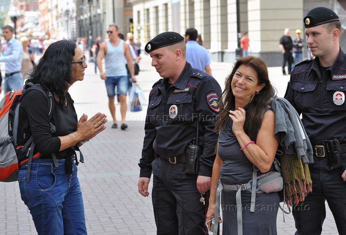 Туристическая полиция на улицах Москвы.