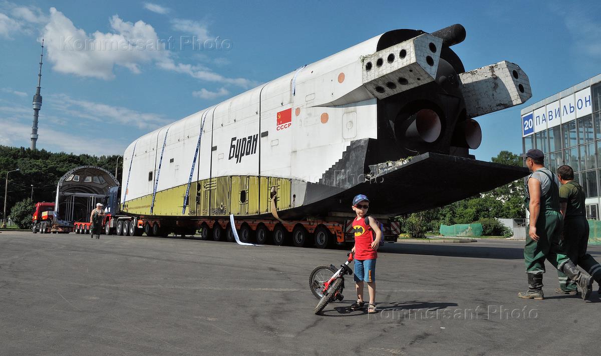 Транспортировка орбитрального корабля "Буран" с Пушкинской набережной на территорию комплекса ВДНХ.