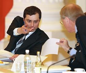 Заместитель главы администрации Президента России Владислав Сурков (слева) и заместитель…