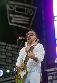 Лидер группы "Ленинград" Сергей Шнуров (справа) во время выступления группы на музыкальном фестивале…