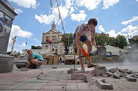 Восстановительные работы на Майдане незалежности (Площади независимости) в Киеве.