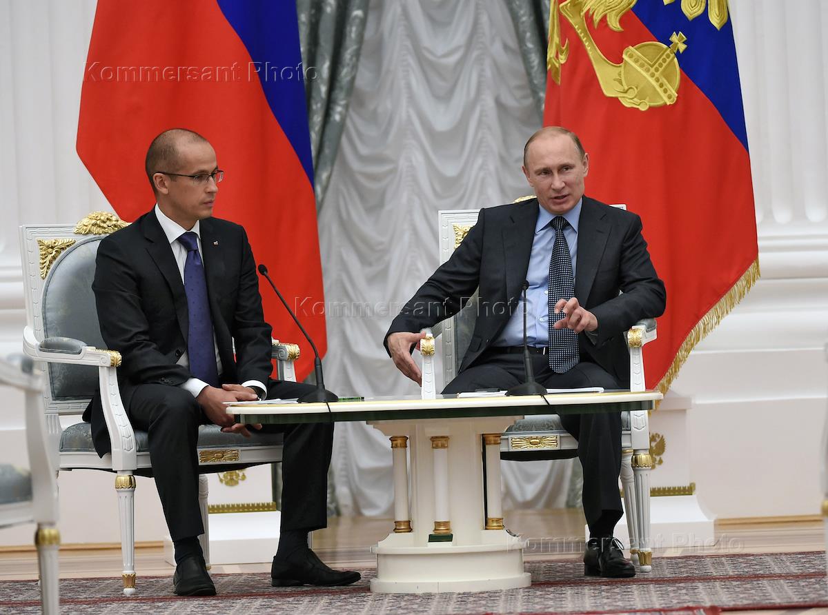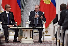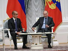 Секретарь Общественной палаты России Александр Бречалов (слева) и президент России Владимир Путин…