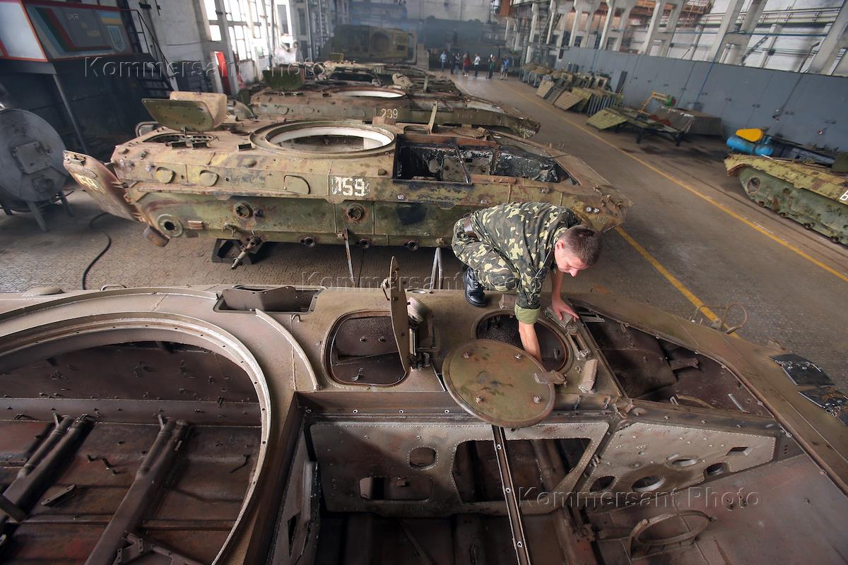 Рабочие во время капитального ремонта боевых машин пехоты и десанта Украинской армии на Житомирском…