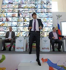 Образование П/к руководителя Рособрнадзора Сергея Кравцова, посвященная завершению экзаменов в 2014 году, в ситуационно-информационном центре по вопросам проведения ЕГЭ.