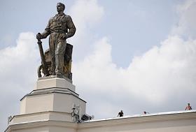 Рабочие на реконструкции Всероссийского выставочного центра (ВВЦ).