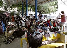 Украинские беженцы прибывшие из города Луганска и Донецка в лагере временного размещения.