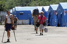 Украинские беженцы прибывшие из города Луганска и Донецка в лагерь временного размещения.