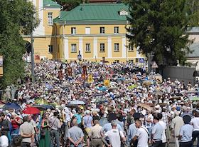 Паломники и священники во время Торжественного крестного хода из Хотьково в Сергиев Посад,…