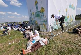 Торжественный крестный ход из Хотьково в Сергиев Посад, посвященный 700-летию со дня рождения Сергия Радонежского. Патриарх Московский и всея Руси Кирилл во время молебна после крестного хода в лагере для паломников