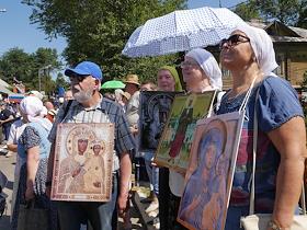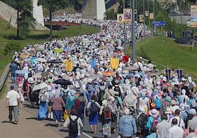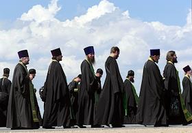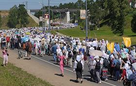 Паломники и священники во время Торжественного крестного хода из Хотьково в Сергиев Посад,…