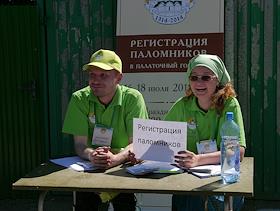 Регистрация паломников во время торжественного крестного хода из Хотьково в Сергиев Посад,…