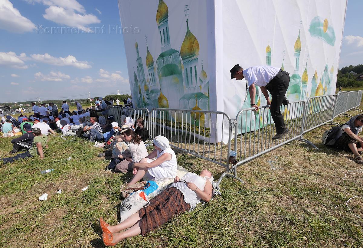 Светская жизнь Торжественный крестный ход из Хотьково в Сергиев Посад, посвященный 700-летию со дня рождения Сергия Радонежского. Патриарх Московский и всея Руси Кирилл во время молебна после крестного хода в лагере для паломников