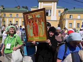 Паломники и священники во время Торжественного крестного хода из Хотьково в Сергиев Посад,…