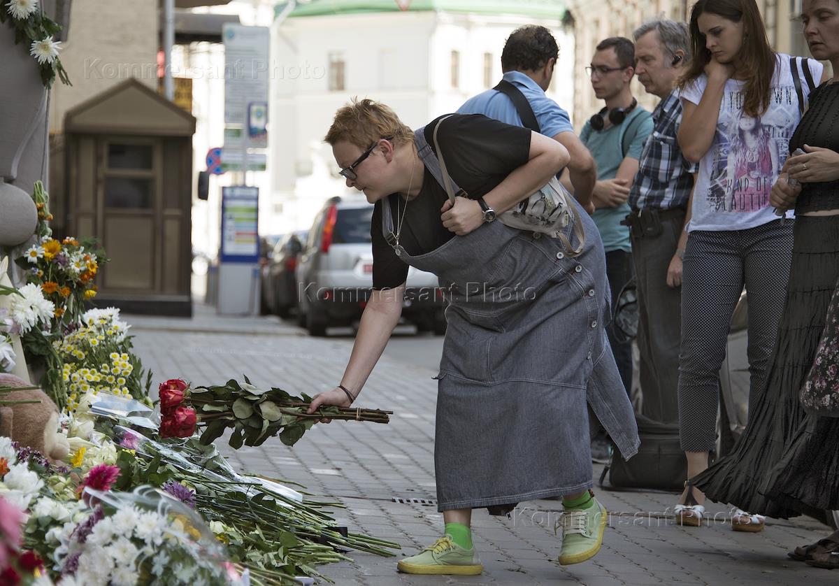 Возложение цветов в память о жертвах крушения Boeing 777, у посольства Нидерландов в Москве.
