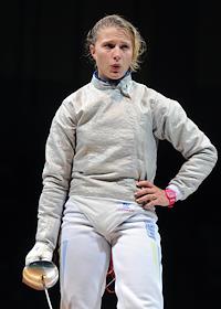 Чемпионат мира по фехтованию 2014. Член сборной Украины Алина Комащук во время соревнований.