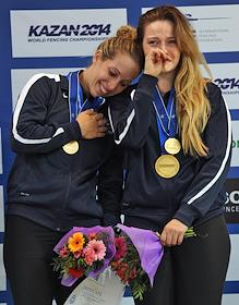 Чемпионат мира по фехтованию -2014. Спортсменки Франции слева направо: Сесилия Бердер и Шарлотт…