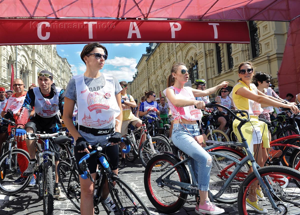 Велопробег по Бульварному кольцу "ГУМовские велокатания". Участники велопробега на старте.