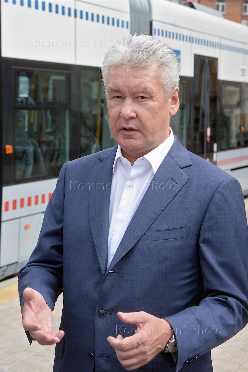Мэр Москвы Сергей Собянин во время осмотра трамвая нового поколения в Краснопресненском трамвайном…