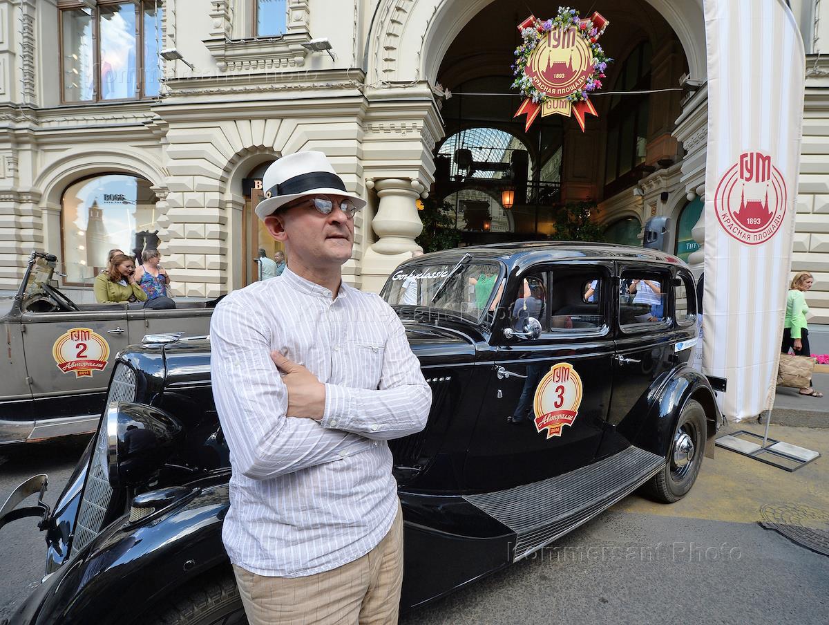 Авторалли ГУМ Gorkyclassic 2014. Генеральный директор ИД "КоммерсантЪ" Павел Филенков у автомобиля…