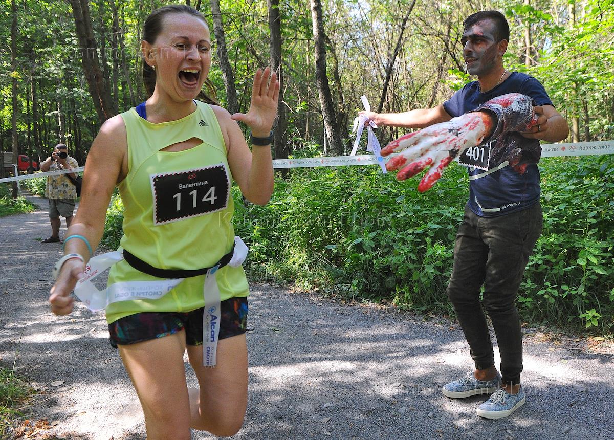 Участники "Зомби-забега" - дистанции пересеченной местности с препятствиями, где поджидают ужасные…