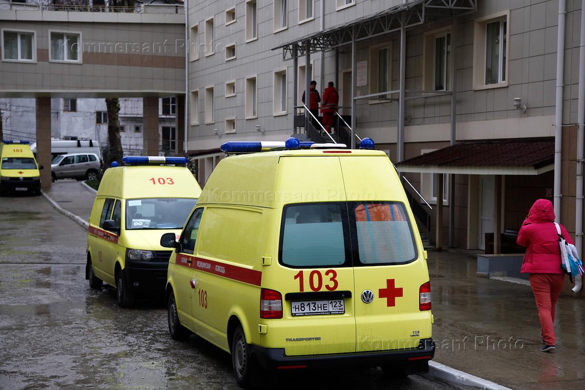 Жанровая фотография. Машины скорой помощи у здания Городской больницы № 8 в Красной Поляне.