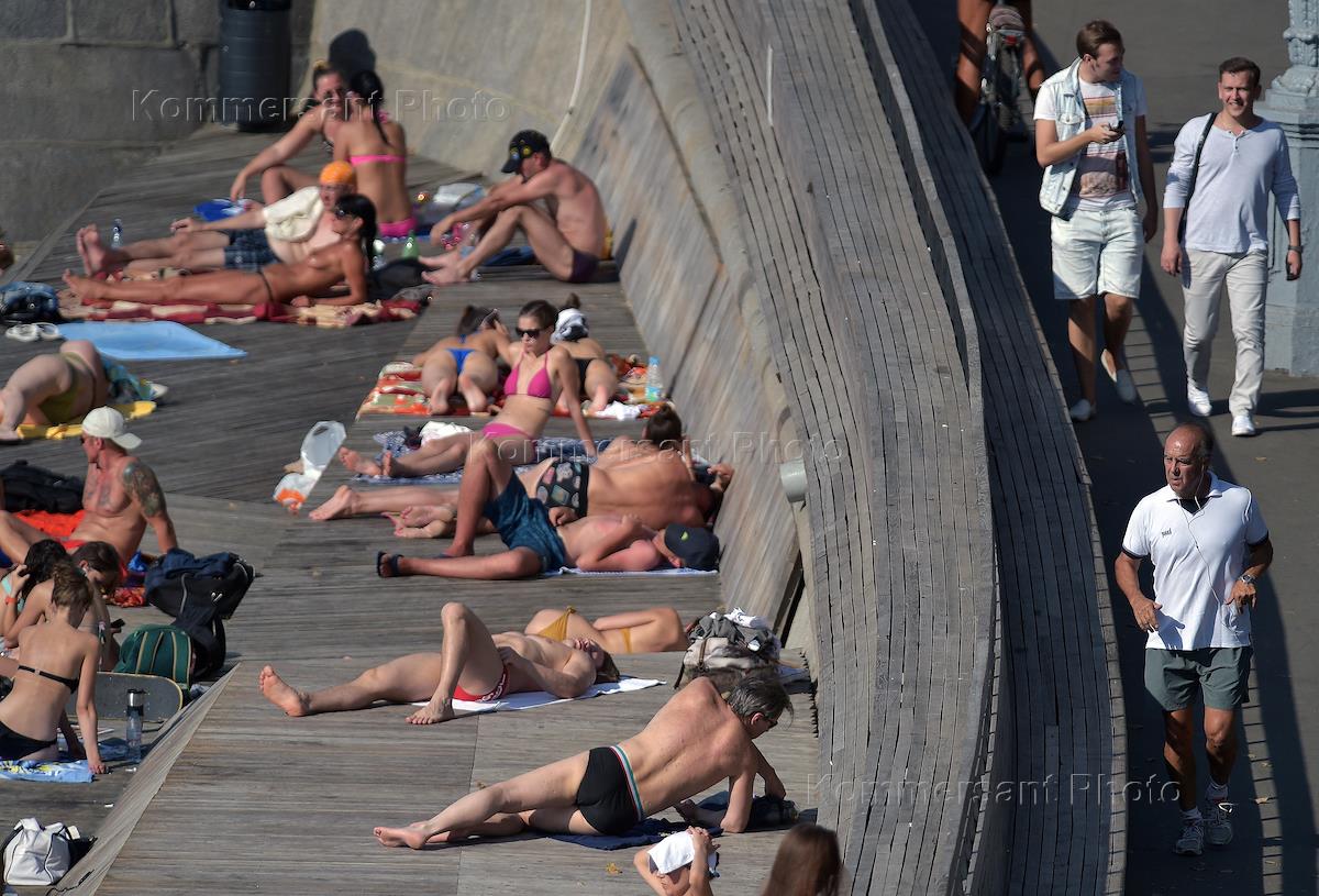 Жара в Москве. Отдыхающие в Парке Горького.