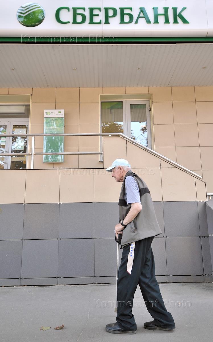 Филиал Сбербанка России на Славянском бульваре. Молодые люди у банкомата.