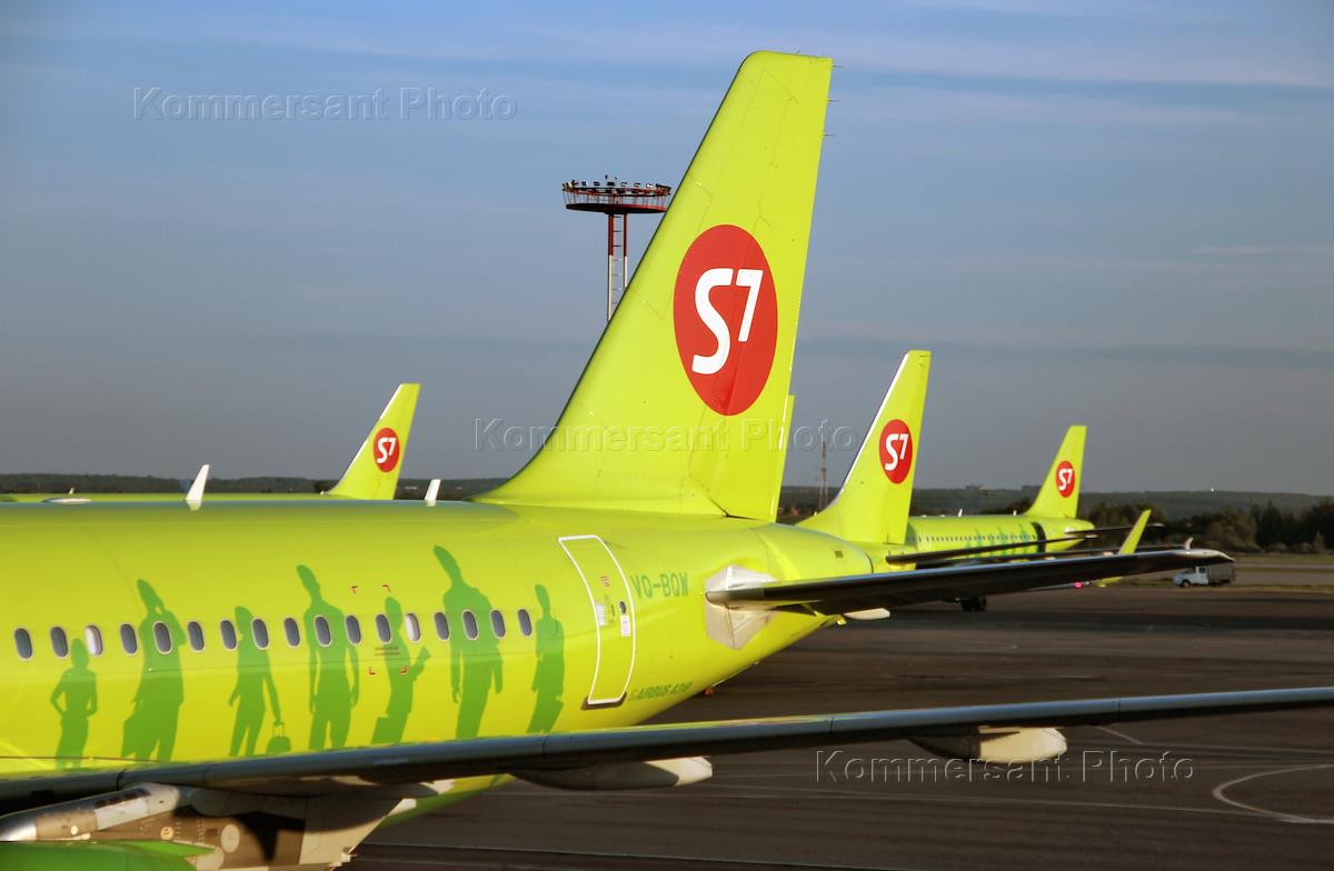 Самолеты авиакомпании S7 в аэропорту Домодедово.