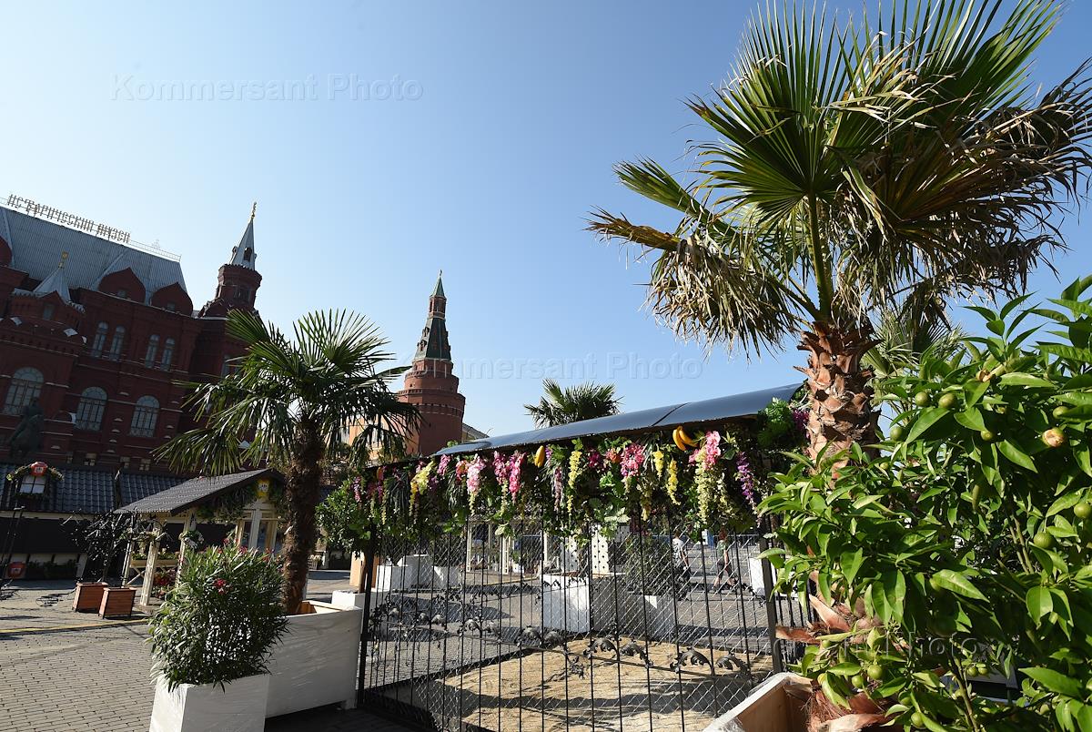 Манежная площадь во время фестиваля "Московское варенье". Тематическая площадка "Райский сад".