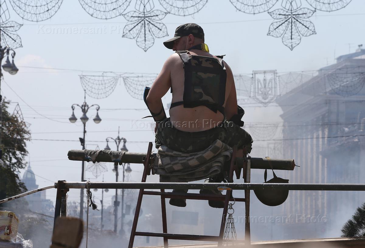 Беспорядки на Площади Независимости в Киеве. Митингующие устроили пожар на Площади. Участники …