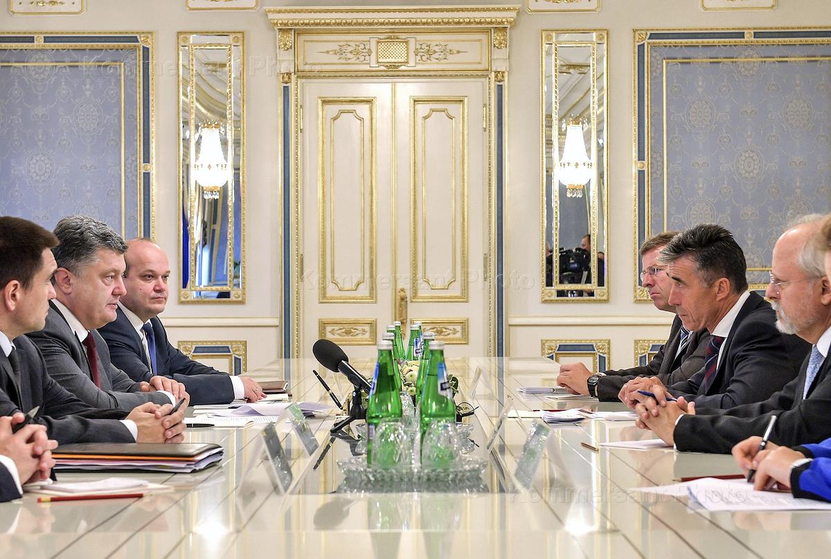 Президент Украины Петр Порошенко (слева) и генеральный секретарь НАТО Андерс Фог Расмуссен (справа)…